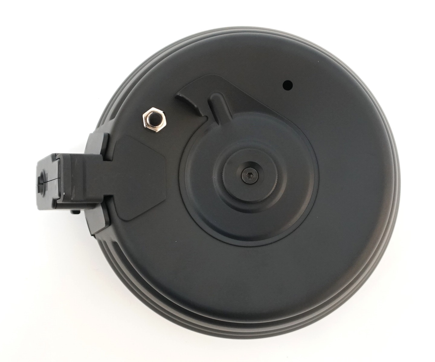 Магазин сделан производителем CYMA. Питается от элементов АА. Механизм подачи обеспечивает бесперебойность подачи шаров, понижая потерю времени при смене магазина. Цвет магазина-черный, все элементы изготовлены из металла. Отличие данной модели в том, что рядом с кнопкой активации подачи шаров находится микрофон, который сам запускает подкрутку магазина, если улавливает громкие звуки рядом. Например, стрельбу из привода. Данное изобретение позволяет вести бой не отвлекаясь от цели и не меняя положение рук на приводе.