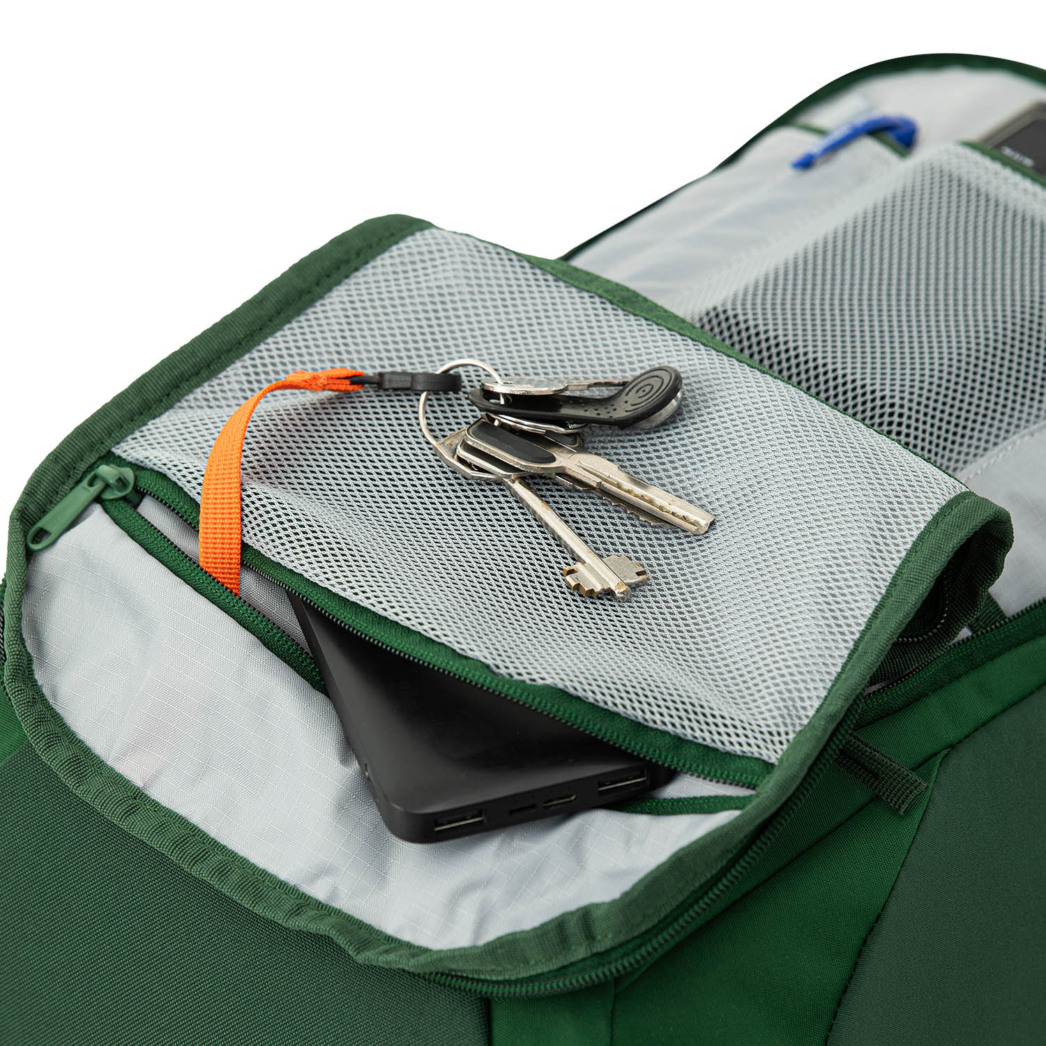 - Отделение-органайзер для повседневных мелочей с карабином для связки ключей.