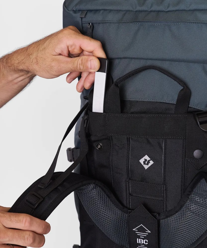 - Эластичная стяжка на фронтальной части рюкзака для внешней подвески снаряжения