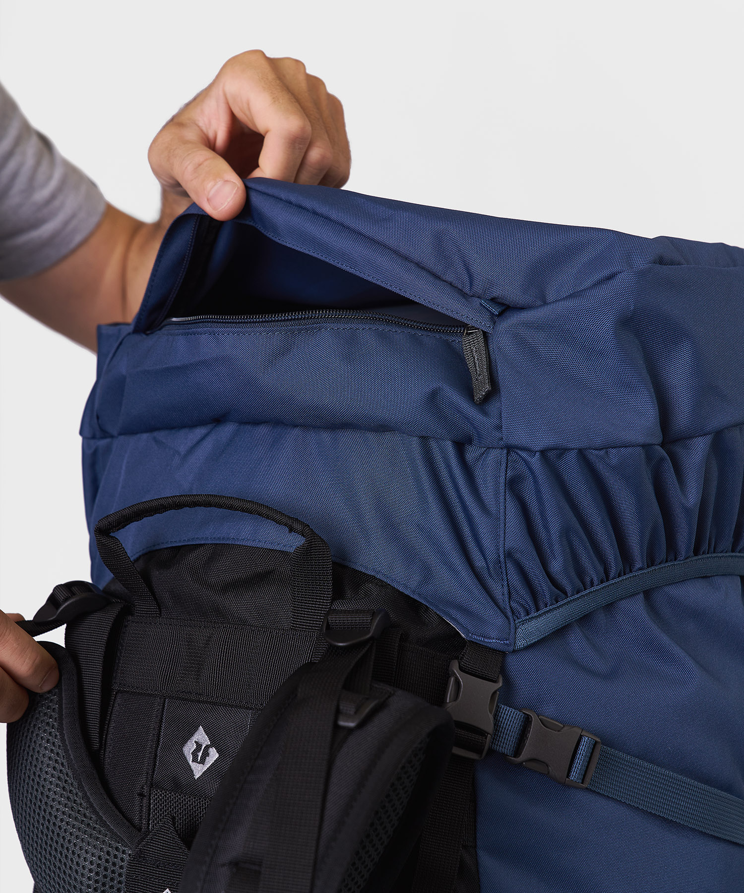 - Эластичная стяжка на фронтальной части рюкзака для внешней подвески снаряжения