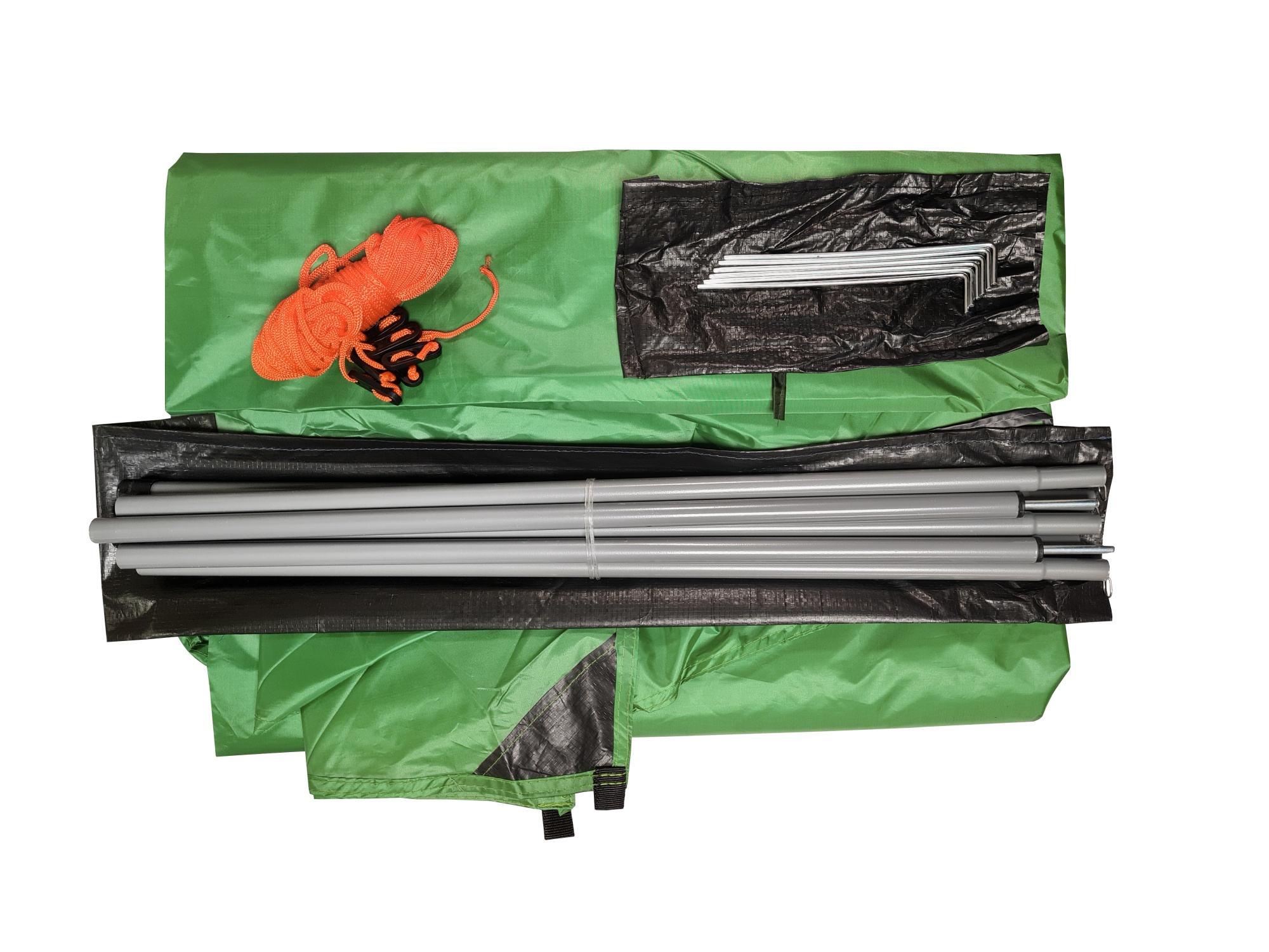 Комплектация: колышки, оттяжки, 2 стальные стойки